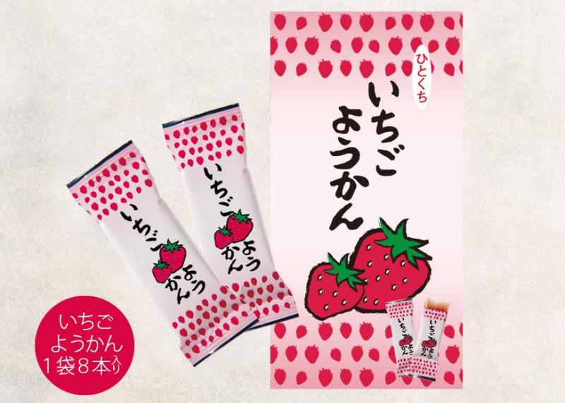 いちごのつぶつぶ感たっぷりのいちごようかんです。香料、着色料を使わず、いちご本来の味と香りで、1つ1つ個包装で手軽に食べられます。どれも甘すぎない味で大変さっぱりしたようかんです。これからも新しいフレーバーのようかんの開発を進めていく予定です。