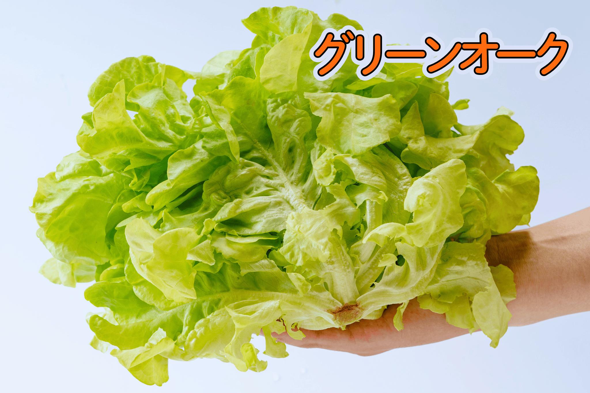 埼玉県・東松山の植物工場で育ったグリーンオークです。淡い黄緑色の葉で、ふわふわやわらかな食感が楽しい商品です。栽培期間中に農薬は使用しておりません。定期的に菌数検査も行っており、洗わずにそのまま食べることができるのが大きな特徴です。クリーンな工場内で育ったため、傷みにくく冷蔵保管で10日以上経ってもおいしく食べることができます。