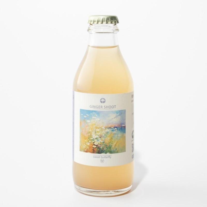 しょうがのむしの代表銘柄。もっともスタンダードな味わいの発酵ジンジャーエール。生姜はもちろん見沼田んぼのものを使用し、隠し味に3種の白い花と酒粕を煮出し、一緒に発酵させました。 甘酸っぱくキュートなだけで終わらない魅力を備えています。 そのまま飲んでも美味しく、お酒と割っても最高。割るならジン、ブランデー、ラムm日本酒で。