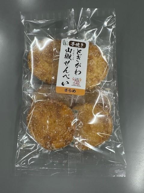 山椒せんべいザラメ 手焼きの甘い煎餅に粉山椒の爽やかさが特徴 【商品の分類】 / 【内容量】 個 【保存温度帯】 常温 【賞味期限】 製造日から90日 【業務用・小売用】 【希望する販路先】 その他小売 【希望小売価格】 518円(税抜)